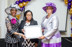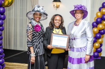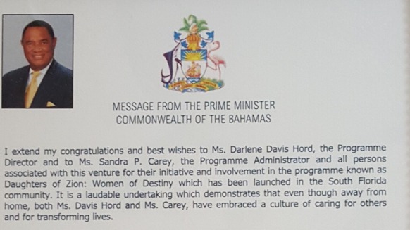 Daughters of Zion Women Of Destiny Founder & President along with Men of Valour President take a moment to thank Dr. Germaine Smith-Baugh, President & CEO of Urban League of Broward County for being the Keynote Speaker at the 2018 Daughters of Zion Women of Destiny Tea Party